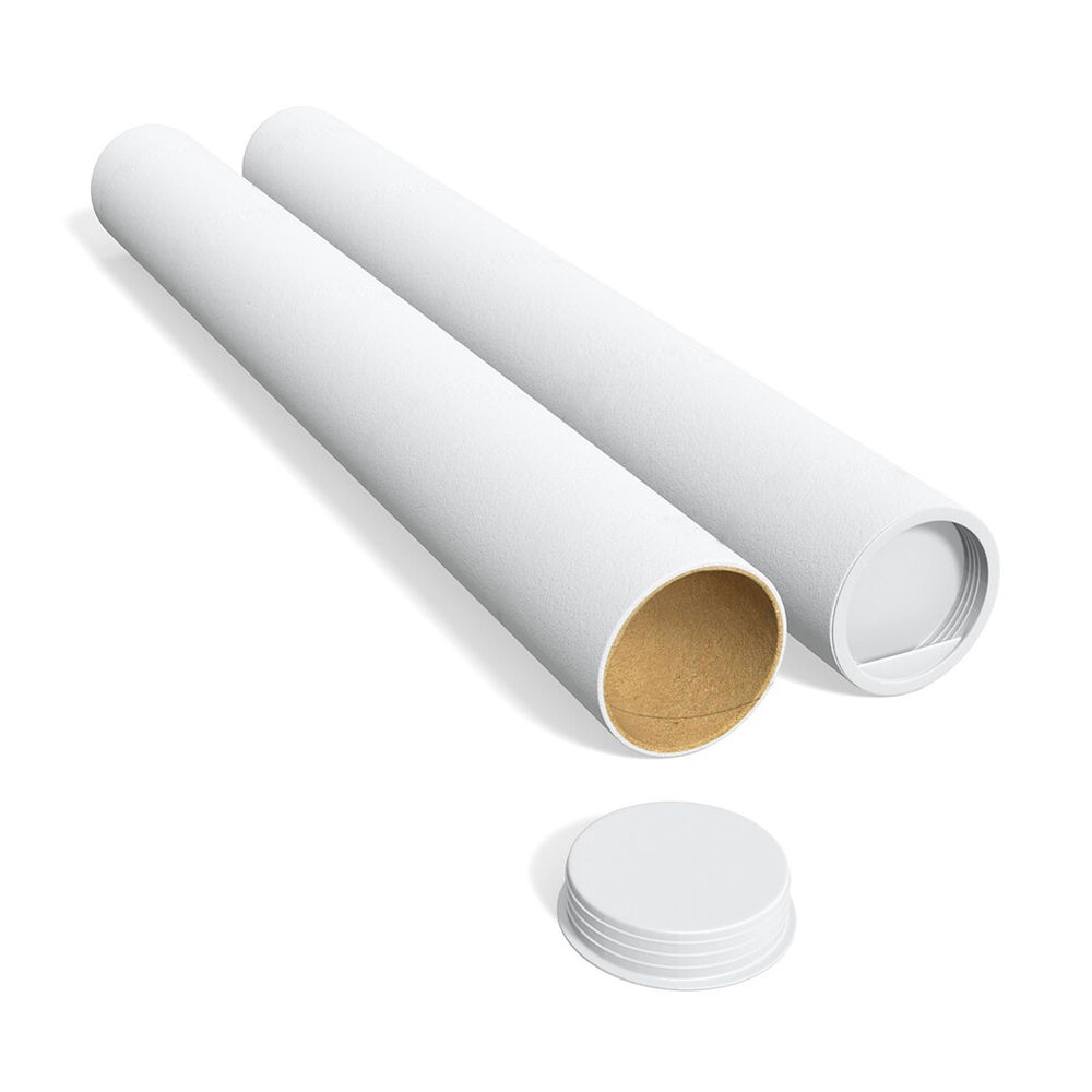 Witte kartonnen verzendkoker, inclusief 2 kunststof doppen.