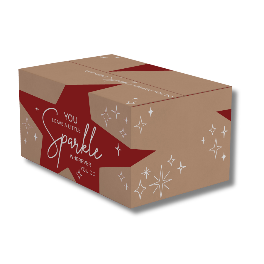 De Sparkle doos brengt licht in de winterdagen. Gemaakt van naturel bruin karton en afgewerkt met een opvallende ster beschikbaar in vier feestelijke kleuren, straalt deze doos positiviteit en waardering uit. Ideaal voor een kerstpakket dat net dat beetje extra mag hebben.