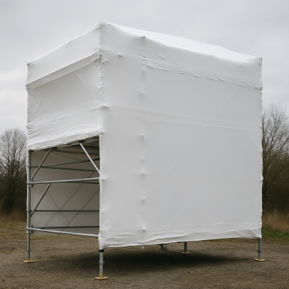 Stel je eens voor dat je aan een renovatie of gevelonderhoud werkt in de herfst of winter. Regen, wind en kou kunnen de voortgang vertragen of de kwaliteit van het werk beïnvloeden. Traditionele zeilen of netten bieden vaak onvoldoende bescherming en laten tocht of vocht door.
